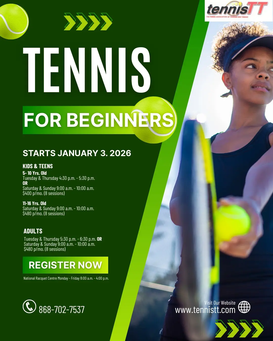 Whether you're a complete beginner or looking to refine your skills, TennisTT is excited to offer Beginner Tennis Classes in the month of January, 2026, at the National Racquet Centre, Tacarigua!